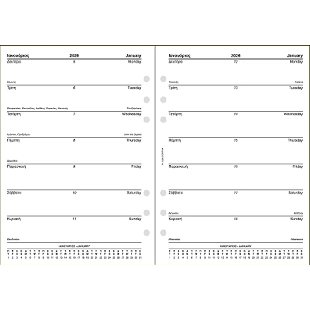 2026 Ημερολόγιο 21×14.8cm Εβδομαδιαίο Ανταλλακτικό Contax Α5. Προσαρμόζεται σε όλα τα γνωστά Organizers που δέχονται ανταλλακτικά διαστάσεων 21×14.8cm.